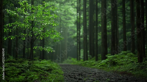 Fototapeta premium Misty Forest Path With Small Tree