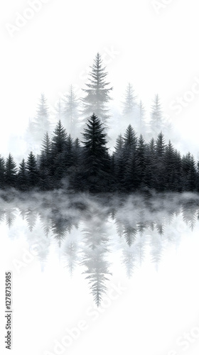 Obraz premium Misty Forest Reflection 3D Illustration