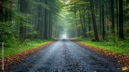 Obraz premium Misty forest road autumn