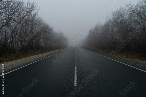 Fototapeta premium misty forest road in the fog
