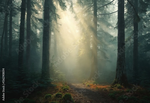 © LucieAliceNova, Obraz premium Misty Forest Scene