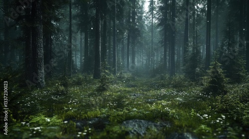 © Andrian, Obraz premium Misty Forest, Snowfall