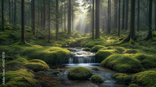 Obraz premium Misty forest stream