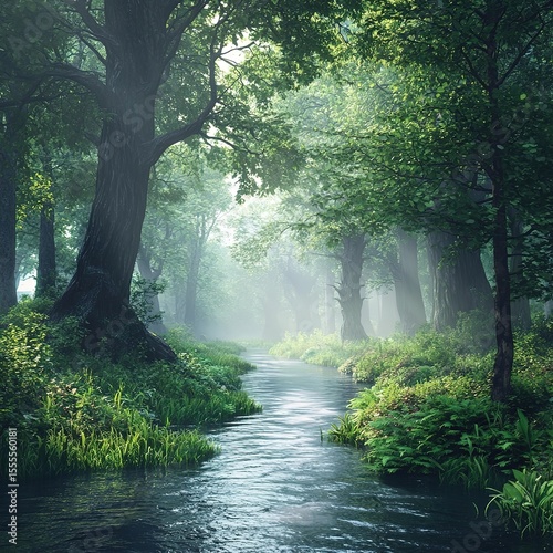 © Eko, Obraz premium Misty forest stream