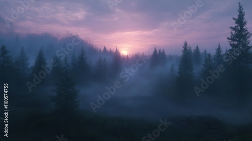 Fototapeta premium Misty Forest Sunset With Silhouetted Trees