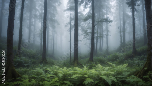 Fototapeta premium Misty Forest with Ferns.