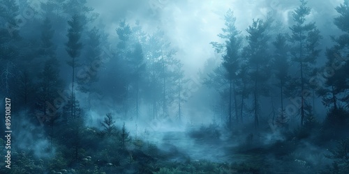 © ds17, Obraz premium Misty Forest with Sun Rays