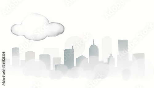 Naklejka premium Misty Harbor Skyline Background Template, Soft Focus Urban Waterfront Digital...