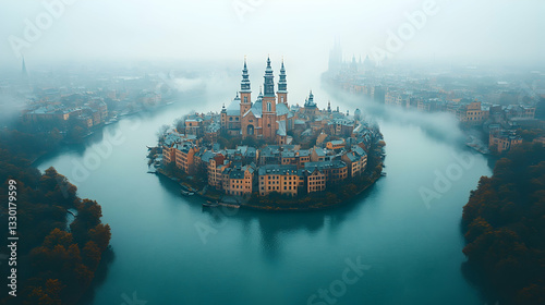 Obraz premium Misty Island Cityscape