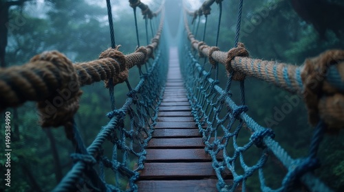 © waok.cepu67, Obraz premium Misty jungle rope bridge