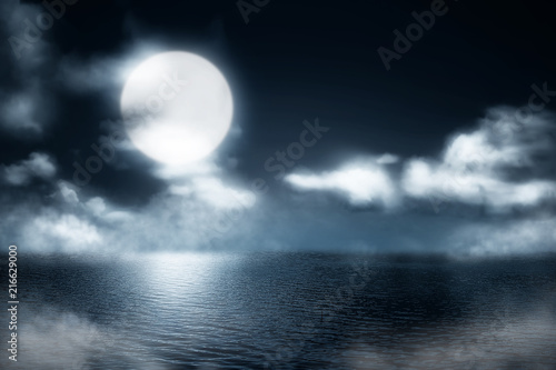 © Leo Lintang, Obraz premium Misty lake at night with moonlight background