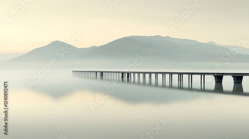 © Sleeping Carbuncle, Fototapeta premium Misty Lake Bridge Sunrise Landscape