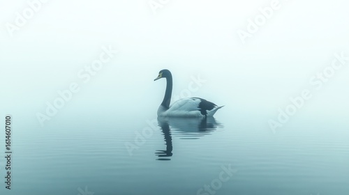 Obraz premium Misty lake, single swan