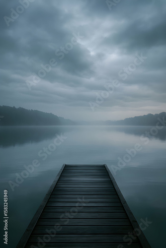 Obraz premium Misty Lake with Wooden Pier at Dawn