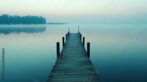 © akun, Obraz premium Misty Lake & Wooden Pier