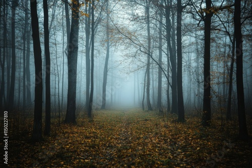 Obraz premium Misty landscape featuring a solitary tree atop a rocky hill in a serene...