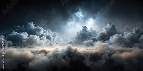 © Jotch, Obraz premium Misty landscape with smoke clouds on left side, creating fog on dark background, clouds, serene, clouds,serene,atmosphere