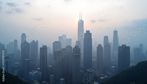 Fototapeta premium Misty Metropolis: Urban Skyline Shrouded in Haze