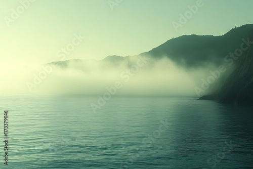© Tahu, Naklejka premium Misty morning coastal landscape.