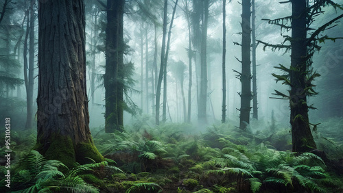 © Muhammad, Fototapeta premium Misty Morning: Forest in Dawn's Light