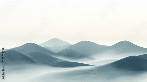 Fototapeta premium Misty Morning Hills: Rolling hills partially shrouded in early morning mist....