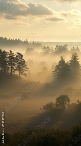 © MrMachyH, Fototapeta premium Misty Morning in a Serene Landscape