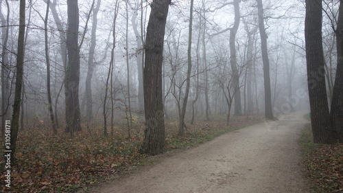 © Nikolay, Naklejka premium Misty morning in Schoenbrunn park in Vienna