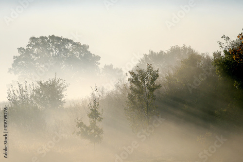 © Salons, Obraz premium misty morning in the forest