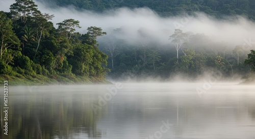 Fototapeta premium Misty Morning in the Lush Tropical Rainforest
