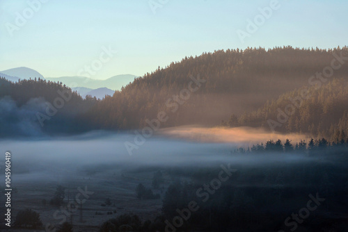© Anelia, Fototapeta premium Misty morning in the mountains