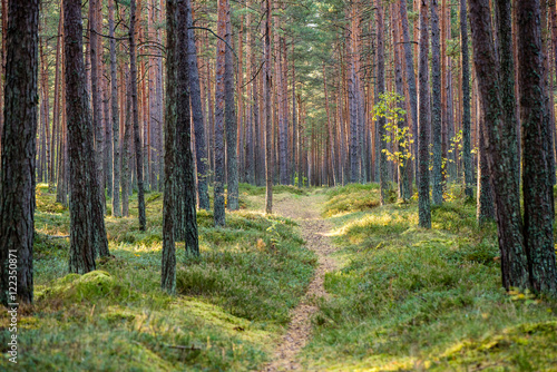 © Martins Vanags, Fototapeta premium Misty morning in the woods. forest with tree trunks