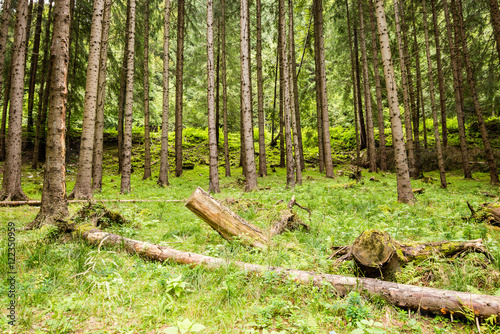 Fototapeta premium Misty morning in the woods. forest with tree trunks