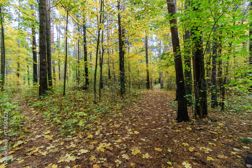 © Martins Vanags, Fototapeta premium Misty morning in the woods. forest with tree trunks