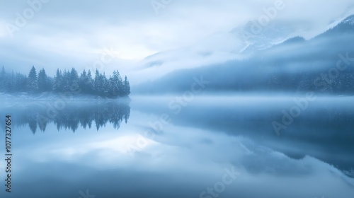 © Heni, Fototapeta premium Misty Morning Lake Reflection