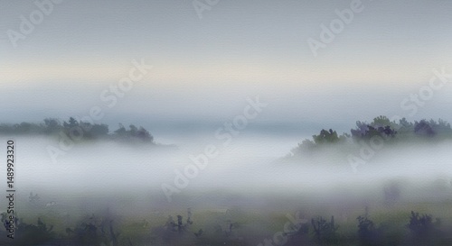 © Johsna, Fototapeta premium Misty Morning Landscape Serene Fog Rolling Through Fields and Trees