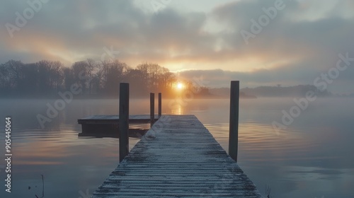 © leymart, Fototapeta premium Misty Morning on a Wooden Dock
