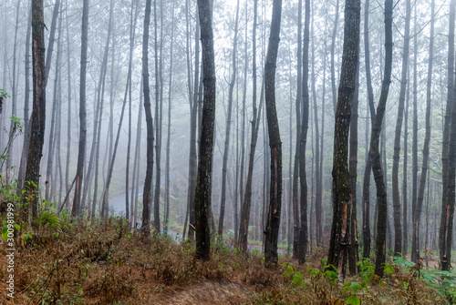 © Chiekung Kurnia, Obraz premium misty morning on foggy pine forest