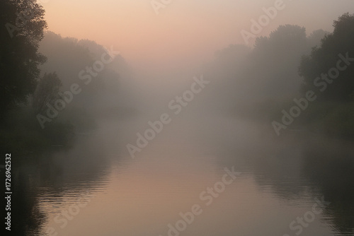 © Александр Арендарь, Fototapeta premium misty morning on the river
