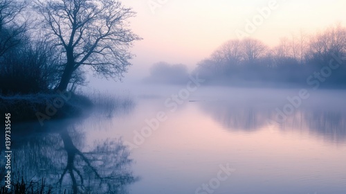 Fototapeta premium Misty mornings creating a mystical aura. Stock photo --ar 16:9 --quality 2...