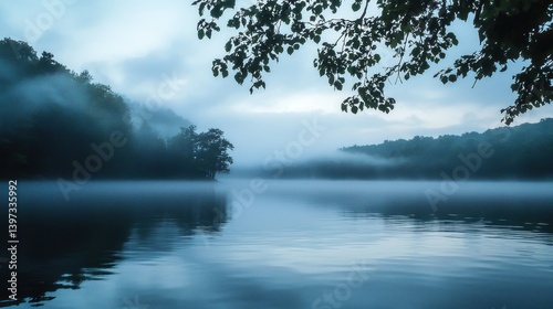 Fototapeta premium Misty mornings creating a mystical aura. Stock photo --ar 16:9 --quality 2...