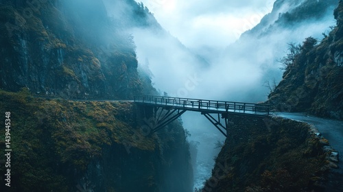 Fototapeta premium Misty Mountain Bridge: A Serene Landscape Photography