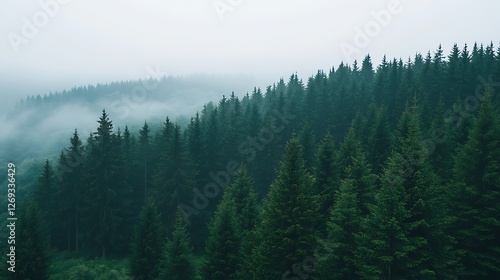 Obraz premium Misty Mountain Evergreen Forest Landscape