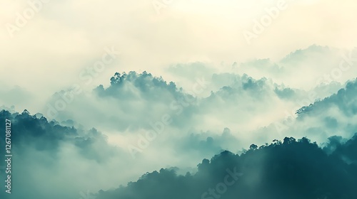 Fototapeta premium Misty Mountain Forest Enveloped In Clouds
