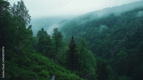 Obraz premium Misty Mountain Forest Landscape. (1)