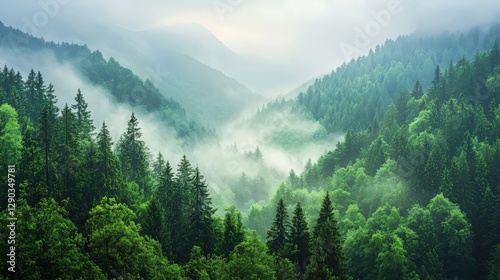 Obraz premium Misty Mountain Forest Landscape Serene Nature Photography