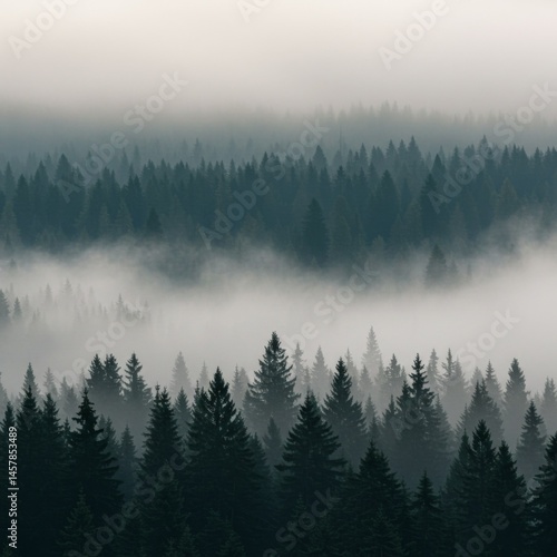 Obraz premium Misty Mountain Forest Landscape with Fog and Dense Trees
