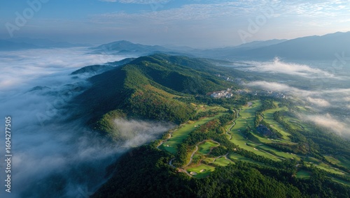 © Kahar, Fototapeta premium Misty mountain golf course