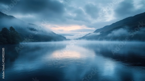 © zeitgenstd, Fototapeta premium Misty Mountain Lake at Dawn