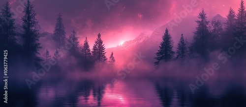 © Muhas, Fototapeta premium Misty Mountain Lake at Dusk