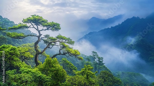 © dyaSphere, Obraz premium Misty Mountain Landscape